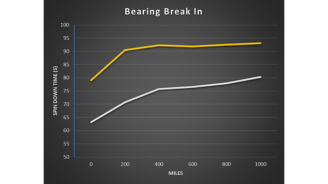 Gold Grease produces 25% less drag vs. Silver Grease, and 16% less drag at 1,000 miles vs. Silver, according to Chris King, which added with time to wear-in, Gold Grease also produces 18% less drag at 1,000 miles vs. brand new. This gives some context to the company's frequent claim that its bearings get faster over time.