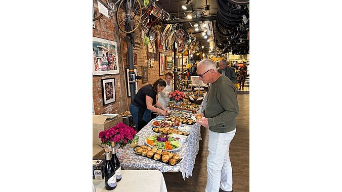 On to the after-party at U Bikes. Marvelous food from Boulder's Best Baker Lindasue Smollen. Noise levels unprecedented in the history of the building. A great gathering of local HCs, industry notables and movie people.