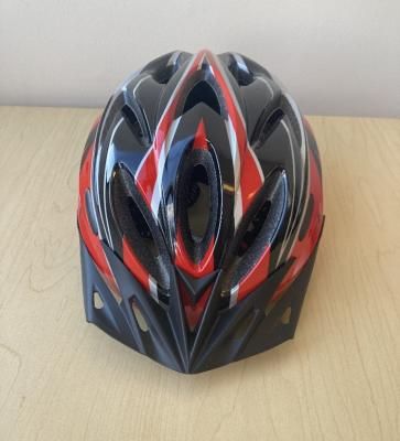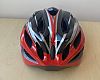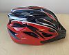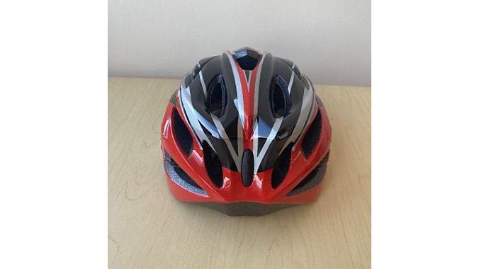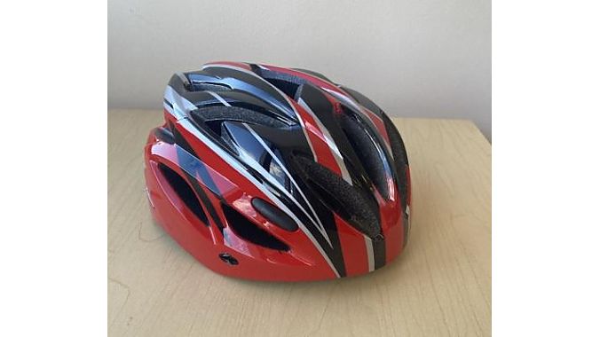The helmets are in one size, fitting a head circumference of 22 inches to 24 inches. They are red and black with silver stripes and have gray padding. They have a removable visor, black straps with a silver reflective pattern in the center, a black-and-red buckle with a gray chin strap, and a black plastic knob at the back to adjust the fit. CPSC is aware that the firm also sold helmets in black/white and gray.