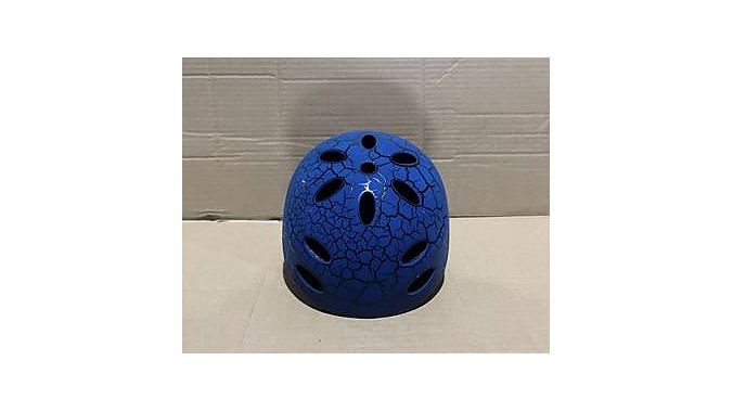 Manufactured in China, the recalled helmets were sold in one size and fit a head circumference of about 21 to 23 inches. They were sold in blue, red, and black with a "cracked" paint design. They were also sold in pure black. The helmets have gray padding, black straps, a black and red buckle with a black chin strap, and a black plastic knob to adjust the fit.