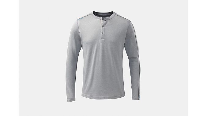 Made in the USA from domestic materials, with greater than 50 percent recycled fiber, the Kitsbow base layer features an athletic, tailored fit. A Henley-inspired design includes a quarter-length snap closure and accented embroidery and seams. It can be worn as a base layer or alone, while mountain biking or during any athletic pursuit.