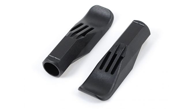 The levers are molded with an wide scoop to effectively reach under and extract the tire bead. The material was chosen for strength and low friction.