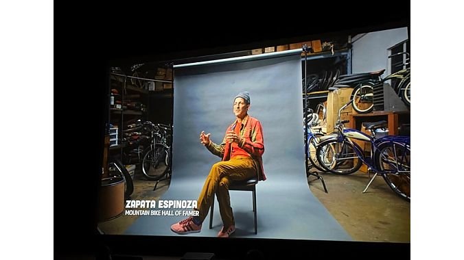 Mid-movie, we were treated to a film-within-a-film about the evolution of the mountain bike scene, the Repack days and the Stumpjumper as the first commercially available mountain bike. Wild cheering from the HCs, "Yo, Zap! Yo, Gary!"curious silence from the JRAs.