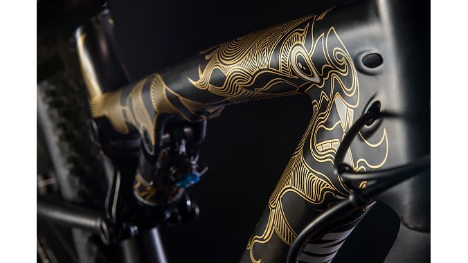 The Sherpa is based on the Rocky Mountain Element carbon front triangle, with a wider aluminum rear end to accommodate WTB 27.5x2.8 Trailblazer tires. The frame has 95 mm of rear travel combined with 120mm up front. The Manitou shock and fork were custom tuned for optimum performance with a fully loaded bike and the rider position was made more upright for long days in the saddle.