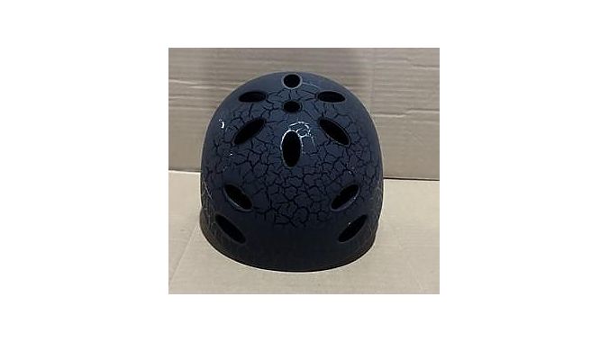 Manufactured in China, the recalled helmets were sold in one size and fit a head circumference of about 21 to 23 inches. They were sold in blue, red, and black with a "cracked" paint design. They were also sold in pure black. The helmets have gray padding, black straps, a black and red buckle with a black chin strap, and a black plastic knob to adjust the fit.